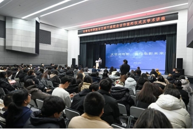 Mr. Jiang Wusheng delivered a special lecture themed Grand Space Cinema: Reconstructing the Film Ecosystemat the Comprehensive Theater of the School.